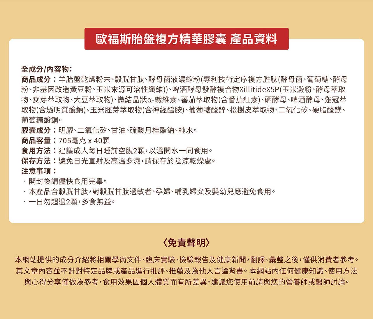 歐福斯胎盤複方精華膠囊